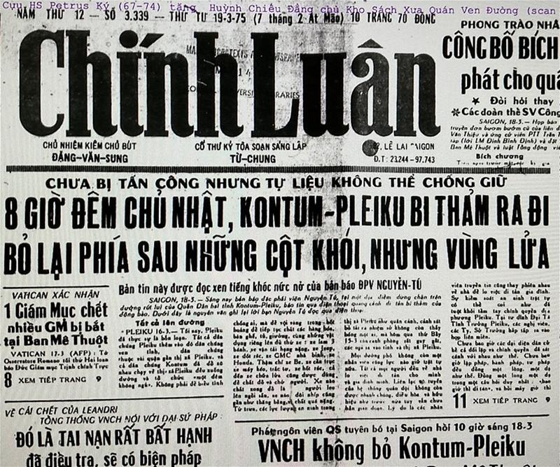 Bắt đầu từ đâu? Đã định lấy vụ Cộng quân đánh Ban Mê Thuột ngày 10 tháng 3, 1975, làm mốc thời gian khởi sự những ngày cuối cùng của VNCH. Nhưng số phận của thành phố này đã không rõ ràng trong một tuần. Chính Luận, số báo đề ngày Thứ Ba, 11 tháng 3, 1975, chạy tin quan trọng nhất, 5 cột: Ban Mê Thuột bị vây – Phi trường bị chiếm. Báo chí Sài Gòn hồi đó phát hành vào buổi chiều, đề ngày hôm sau. Báo đề ngày 11, phát hành từ chiều ngày 10. Phần mở đầu bản tin cho biết như sau:
