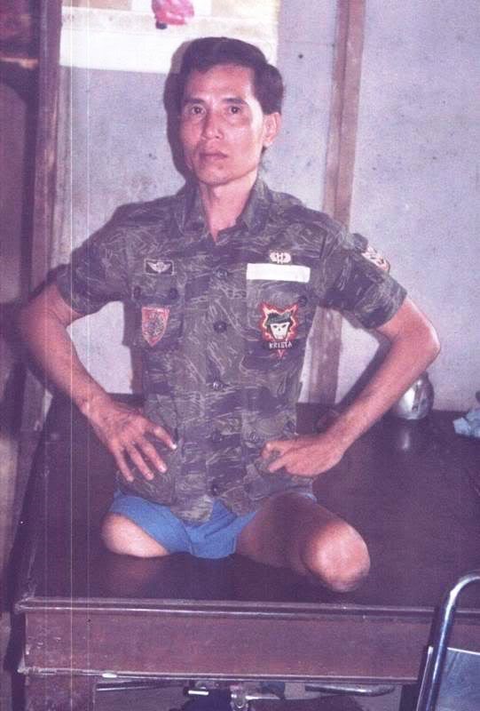 Và khi chiến thắng, ông trung đoàn trưởng nhận bảo quốc, tiểu đoàn trưởng dương liễu, đại đội trưởng sao vàng, trung đội trưởng sao bạc và “thằng” lính này lãnh sao đỏ! Nay anh vẫn hãnh diện mặc áo trận với huy hiệu đầy đủ, chỉ có điều thiếu đôi chân để mặc quần, thiếu chân đứng.