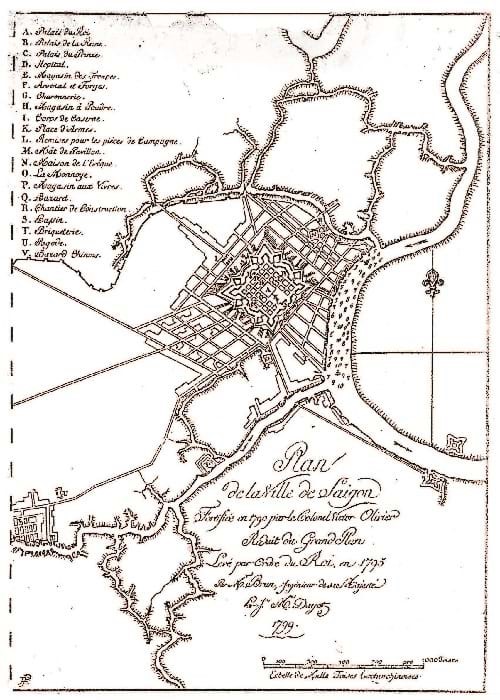 Bản vẽ quy hoạch thành phố Sài Gòn năm 1799, thực hiện theo chỉ đạo của Nguyễn Ánh.