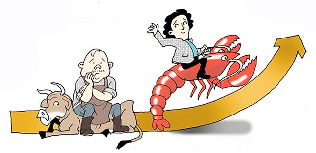 “Nhưng giờ gió đã đổi chiều! Tôm hùm một ký chỉ còn 70 đô, bằng nửa giá năm ngoái!” “Trong khi giá thứ nào cũng leo lên giá tôm hùm lại tuột xuống? Tại sao vậy?”