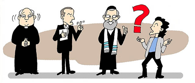Ông ta nghĩ: “Linh mục không có vợ thì làm sao biết quan hệ tình dục là gì?” Thế nên, ông đến gặp một mục sư, người được quyền có vợ. Ông nghĩ mục sư chắc có kinh nghiệm về chuyện này. Vị mục sư trả lời: “Quan hệ tình dục hẳn nhiên là làm việc nên không được phép làm vào ngày Chủ Nhựt!”