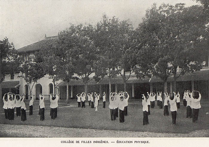 Giờ giáo dục thể chất ở trường Nữ trung học Bản xứ ở Sài Gòn, nay là trường THPT Nguyễn Thị Minh Khai.