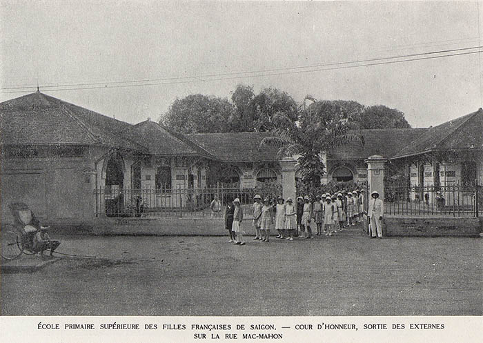 Cổng chính trên đường Mac-Mahon của Trường THPT Nữ sinh Pháp ở Sài Gòn, nay là Trường THPT Marie Curie, đường Nam Kỳ Khởi Nghĩa.