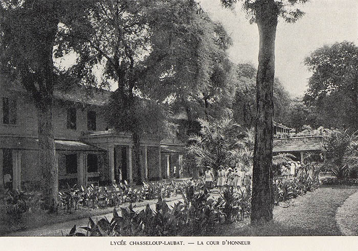 Sân chính của trường trung học Chasseloup-Laubat, Sài Gòn, nay là trường PTTH Lê Quý Đôn.
