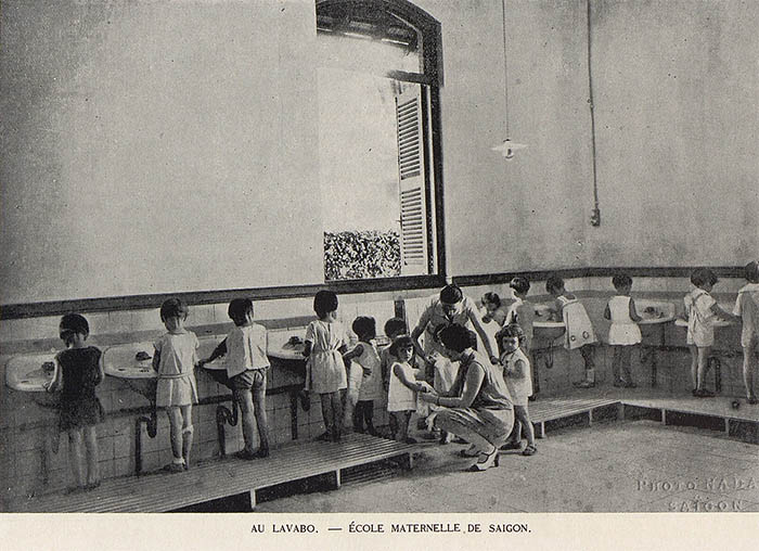 Phòng rửa mặt ở trường mẫu giáo Sài Gòn.