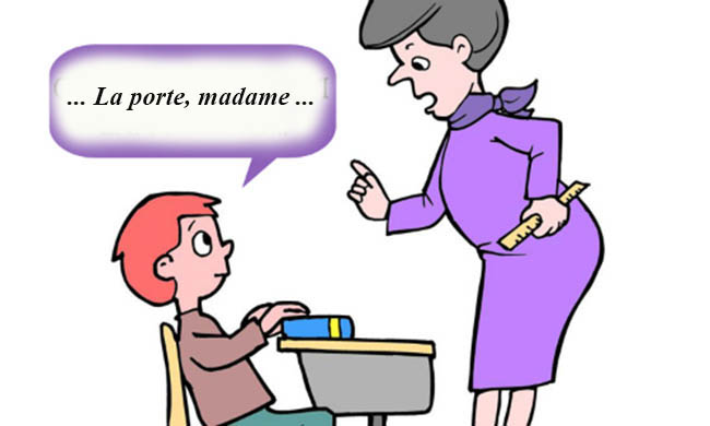 Cả lớp im phăng phắc, bà La Porte leo xuống bàn, chỉ ngay tôi, kẻ to cao nhất lớp, lập lại câu hỏi. Bất chợt, nhìn ra cửa thấy cái cửa đang đong đưa vì gió, tôi buộc miệng: – La porte, madame (Cái cửa thưa bà)