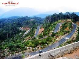 Nhưng quảng đường lên thực đẹp dù rằng các cua rất gắt ,từng đoạn rất ngắn, ngoằn nghèo, hơn cả ở Bạch Mã, hay Hải Vân mà tôi từng đi qua. Đây đó vẫn còn đá sạt lỡ chưa dọn đường trong trận mưa tuần trước. Tôi có hơi run khi nghe tài xế nói lần đầu lên đây, nhưng đã trót nên lại động viên ngược lại anh ta , nói dóc là bạn tôi mới lên về hai hôm (!)