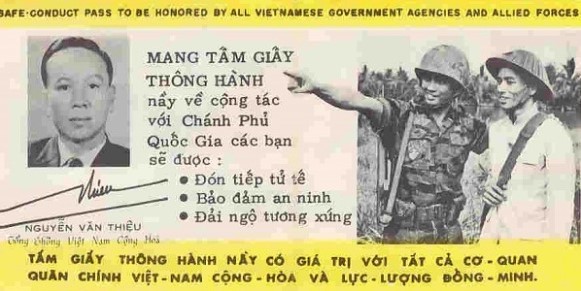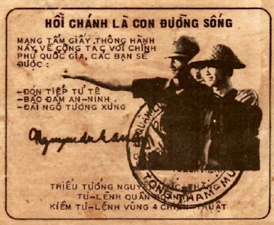 Chương trình “Chiêu hồi” được giới thiệu trên đài phát thanh, rải truyền đơn bằng phi cơ hoặc nhồi truyền đơn trong đạn pháo để bắn vào vị trí trú ẩn của Việt cộng cũng như thành lập các đội võ trang tuyên truyền. Ngoài ra, những cái radio nhỏ được thả bằng dù xuống mật khu Việt cộng hòng giúp cho người nghe hiểu rõ hơn chính sách của chính phủ miền Nam khuyến khích, kêu gọi họ lựa chọn con đường hồi chánh.