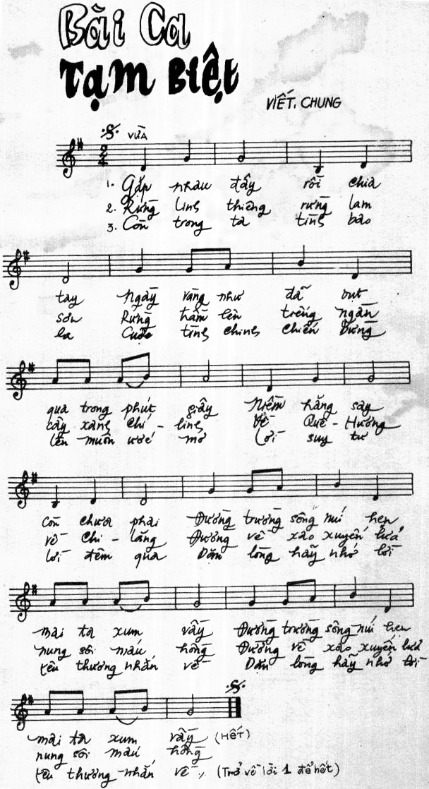 Dưới đây là trọn vẹn lời ca của nhạc phẩm “Bài ca tạm biệt” của nhạc sĩ Viết Chung ..