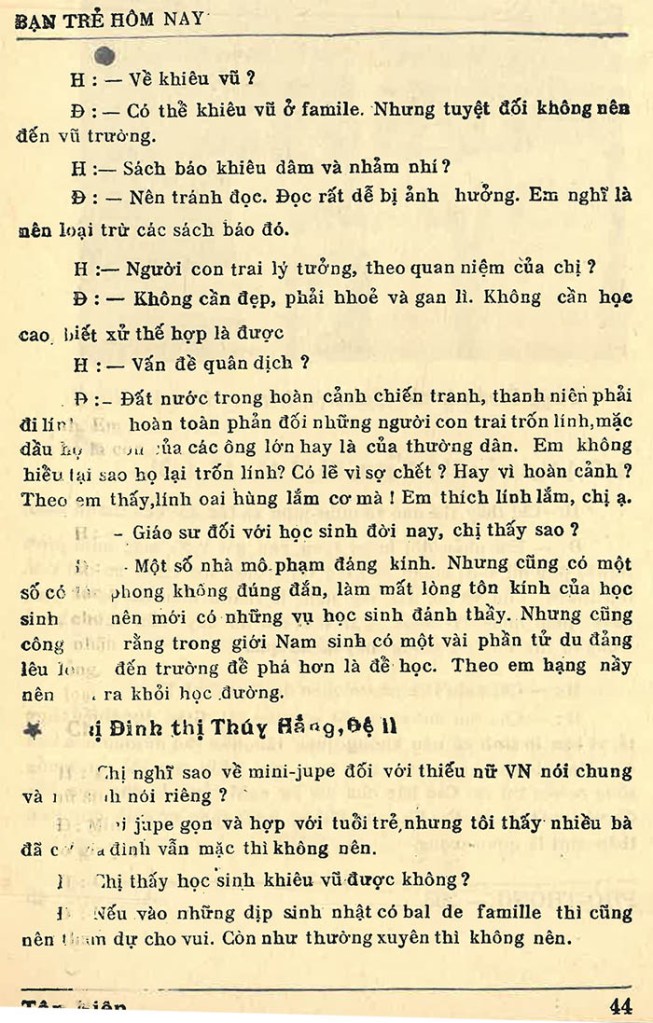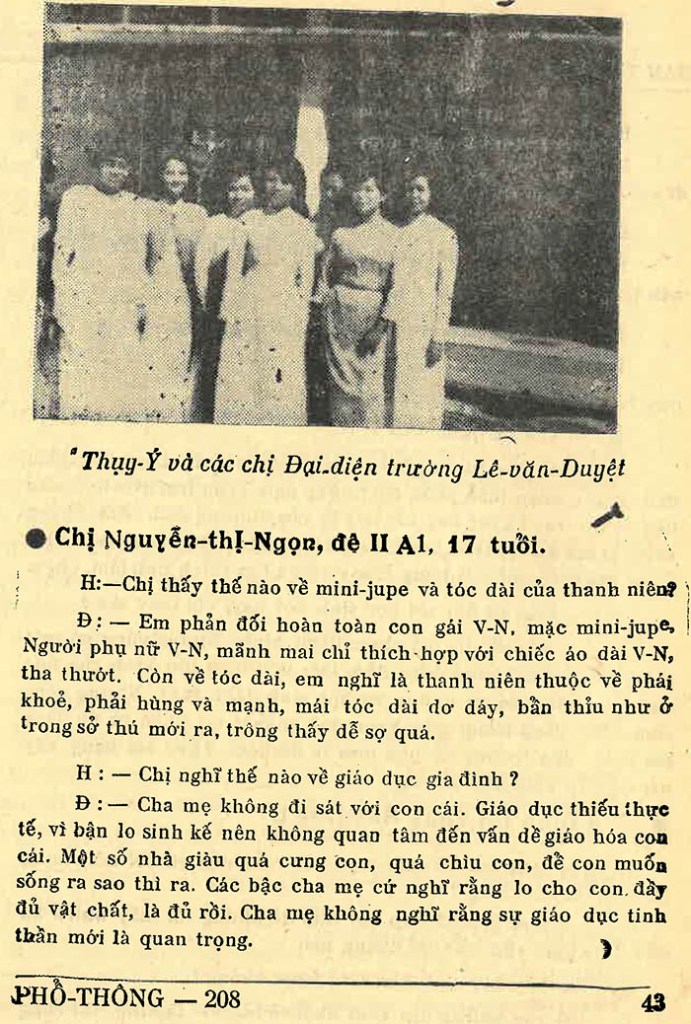 Vào đầu năm 1968, tạp chí Phổ Thông [1] đã thực hiện một cuộc phỏng vấn đến một số học sinh các trường trung học lớn tại Sài Gòn, và đăng tải liên tục trên 4 số báo. Theo sự dự định ban đầu thì nhóm phỏng vấn và chụp ảnh với 4 cô đặc phái viên (ĐPV) Phổ Thông sẽ tiếp xúc sâu rộng với các học sinh và sinh viên nam, nữ không những chỉ riêng ở thủ đô Sài Gòn, mà còn khắp nơi trên toàn quốc. Vì biến cố Tết Mậu Thân, nên có sự gián đoạn từ bài đầu đăng tải vào ngày 15-1-1968 (số 207), và mãi đến 3 tháng sau mới có số báo kế tiếp vào ngày 15-4-1968 (số 208) và kết thúc ngày 15-5-1968 (số 210).
