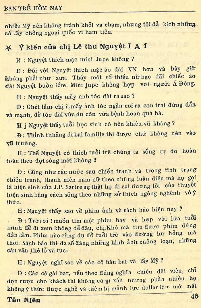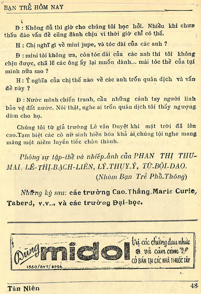 Vào đầu năm 1968, tạp chí Phổ Thông [1] đã thực hiện một cuộc phỏng vấn đến một số học sinh các trường trung học lớn tại Sài Gòn, và đăng tải liên tục trên 4 số báo. Theo sự dự định ban đầu thì nhóm phỏng vấn và chụp ảnh với 4 cô đặc phái viên (ĐPV) Phổ Thông sẽ tiếp xúc sâu rộng với các học sinh và sinh viên nam, nữ không những chỉ riêng ở thủ đô Sài Gòn, mà còn khắp nơi trên toàn quốc. Vì biến cố Tết Mậu Thân, nên có sự gián đoạn từ bài đầu đăng tải vào ngày 15-1-1968 (số 207), và mãi đến 3 tháng sau mới có số báo kế tiếp vào ngày 15-4-1968 (số 208) và kết thúc ngày 15-5-1968 (số 210).
