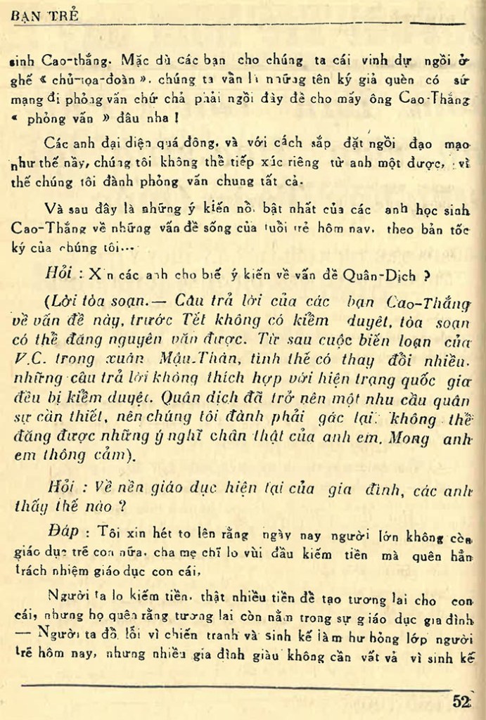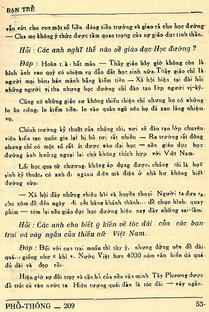 | 210 | 15-5-1968 | (Kết thúc loạt bài phỏng vấn bạn trẻ) |