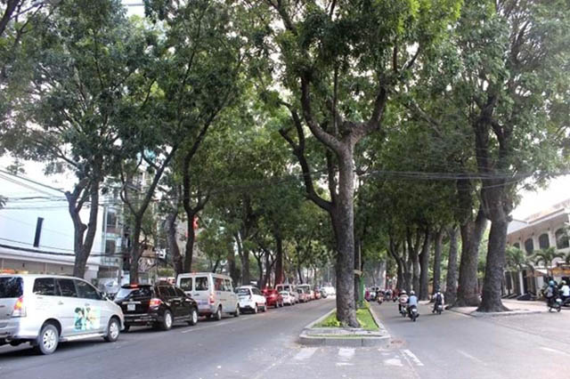 Hàng cây cổ thụ trên đường Tôn Đức Thắng, quận 1, TP.HCM đã bị đốn để làm cầu Thủ Thiêm 2. Ảnh tư liệu chụp ngày 13.11.2014. Ảnh: Trung Dũng