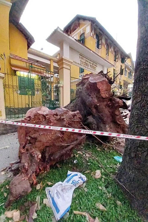 Cần công khai hồ sơ và giấy phép chặt cây trước khi đốn hạ. Trong ảnh: cây cổ thụ lớn trước cửa trường THPT Trưng Vương trên đường Nguyễn Bỉnh Khiêm, TP.HCM bị đốn hạ vào ngày 26.11.2021. Tổ chức Save Heritage đã kiến nghị công khai hồ sơ và lý do chặt cây (ảnh chụp chiều 27.11.2021)
