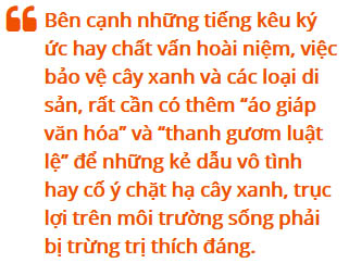 Bên cạnh những tiếng kêu ký ức hay chất vấn hoài niệm, việc bảo vệ cây xanh và các loại di sản, rất cần có thêm “áo giáp văn hóa” và “thanh gươm luật lệ” để những kẻ dẫu vô tình hay cố ý chặt hạ cây xanh, trục lợi trên môi trường sống phải bị trừng trị thích đáng.