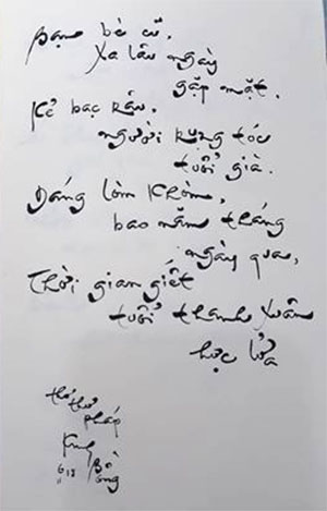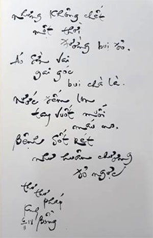 Đó là câu thơ trong trọn vẹn một bài thơ thư pháp rất đắc ý mà tôi đã viết nhân dịp kỷ niệm 40 năm huyện Cần Giờ xáp nhập về thành phố.