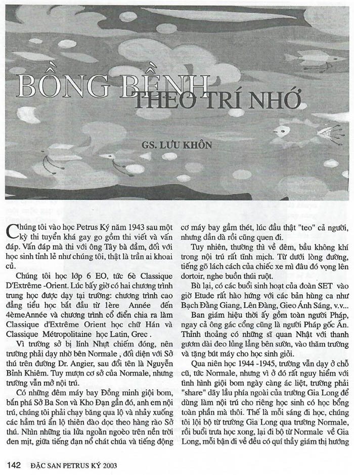 Bồng Bềnh Theo Trí Nhớ GS Lưu Khôn (Nguồn: ĐS Petrus Ky 2003, Hội AH CHS Petrus Ký Bắc California) Share this: Share on X (Opens in new window) X Share on Facebook (Opens in new window) Facebook Like Loading...