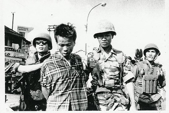 ĐĐ4 của Vũ Đoàn Doan và ĐĐ1 của tôi đựơc điều tới khu vực chùa Ấn Quang, tới nơi thì thấy một số anh em Cảnh Sát Dã Chiến ở đó, toàn bộ khu vực khói lửa ngập trời, đì đùng súng và pháo nổ khắp nơi, đồng bào tràn ra trên các con đường Trần Nhân Tôn, Minh Mạng, Sư Vạn Hạnh, Nguyễn Duy Dương, Bà Hạt v.v… chính tại đây, Thiếu Úy Kiều Công Cự K22VB, Thuộc Đại Đội 4 của Vũ Đoàn Dzoan, bắt sống được tên Bảy Lốp, hắn mang súng K.54 và bản đồ ghi các mục tiêu phải chiếm. Cự bắt khi hắn chạy từ trong chùa Ấn Quang ra. Vì có ông Tướng Cảnh Sát đang hiện diện để theo dõi cuộc hành quân nên TĐT/TĐ2 Ngô Văn Định giao Nảy Lốp cho ông Tướng, và chuyện gì xẩy ra sau đó thì độc giả biết rồi, nhưng có “ký giả” biết cả những chuyện mình không biết nên cứ viết Bảy Lơpp bị bắt ở Bàn Cờ!