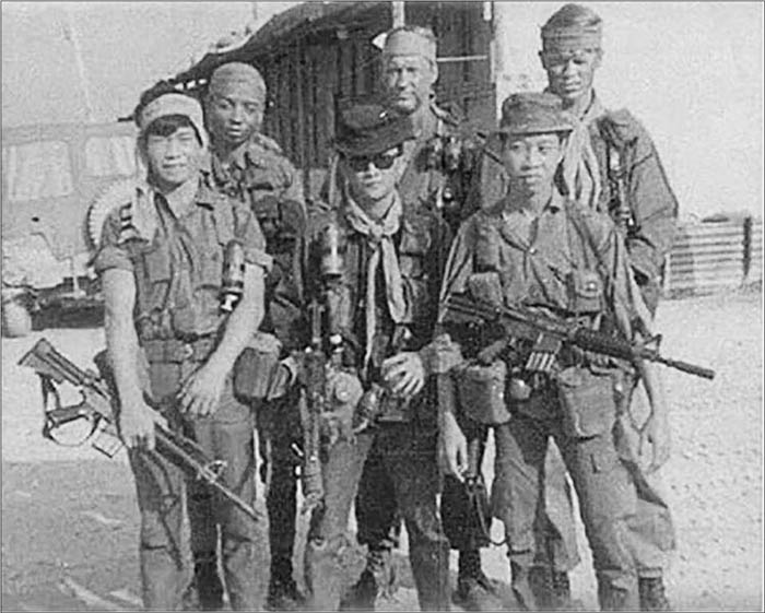 Trần Thành Nghĩa (đeo kính đen) với các Biệt Kích Mỹ