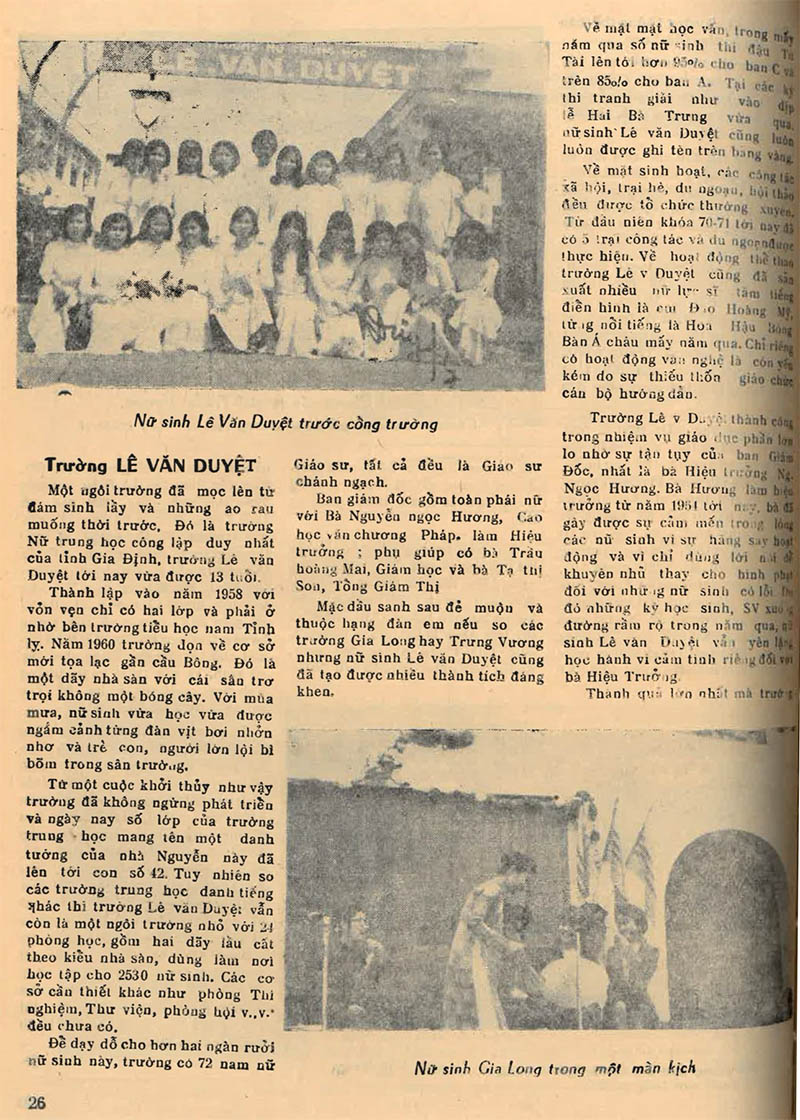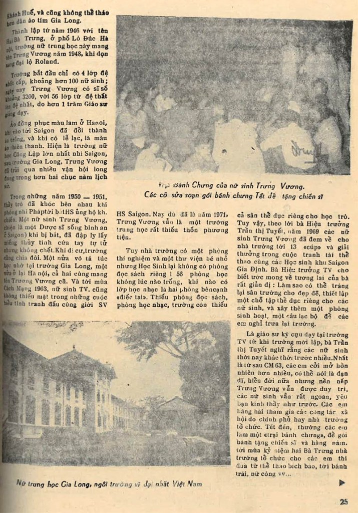 Các trường Nữ Trung Học Việt Nam (Phần 1) Nhóm Phóng Viên Đời(nguồn: tuần báo Đời số 75, ngày 25-3-1971)Võ Phi Hùng sưu tập Các trường: Trưng Vương, Lê văn Duyệt, Gia Long Share this: Click to share on X (Opens in new window) X Click to share on Facebook (Opens in new window) Facebook Like Loading...