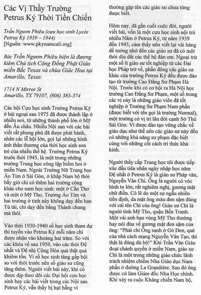 Các vị Thầy trường Petrus Ký thời tiền chiến BS Trần Ngươn Phiêu (Nguồn: Đặc san “Tạ Ơn Thầy, Nhớ Ơn Cô” –Học trò Petrus Ký) Share this: Click to share on X (Opens in new window) X Click to share on Facebook (Opens in new window) Facebook Like Loading...