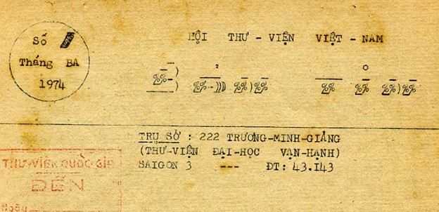 Bản Tin (Hội Thư Viện Việt Nam), số 1 (Tháng 3-1974), tr. 4.