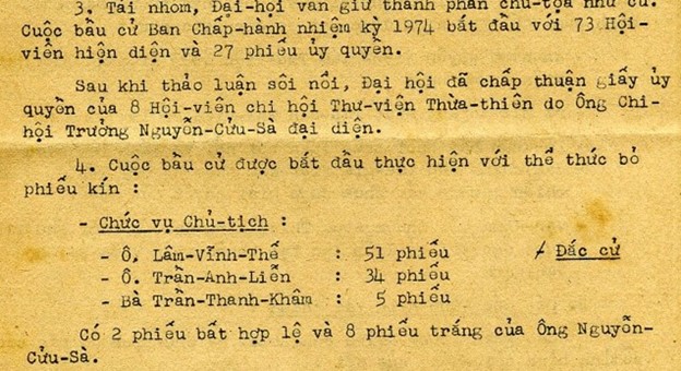 Đầu năm 1974, tại Đại Hội Thường Niên của Hội Thư Viện Việt Nam (HTVVN), tôi đã ra ứng cử và đắc cử chức vụ Chủ Tịch Ban Chấp Hành cho nhiệm kỳ 1974: