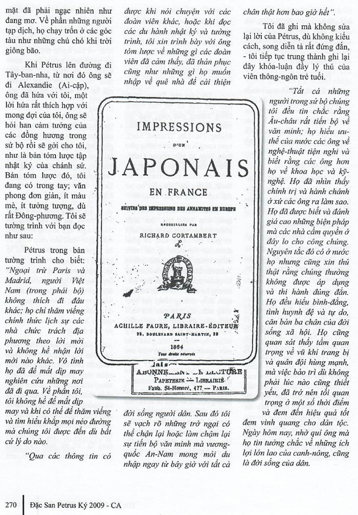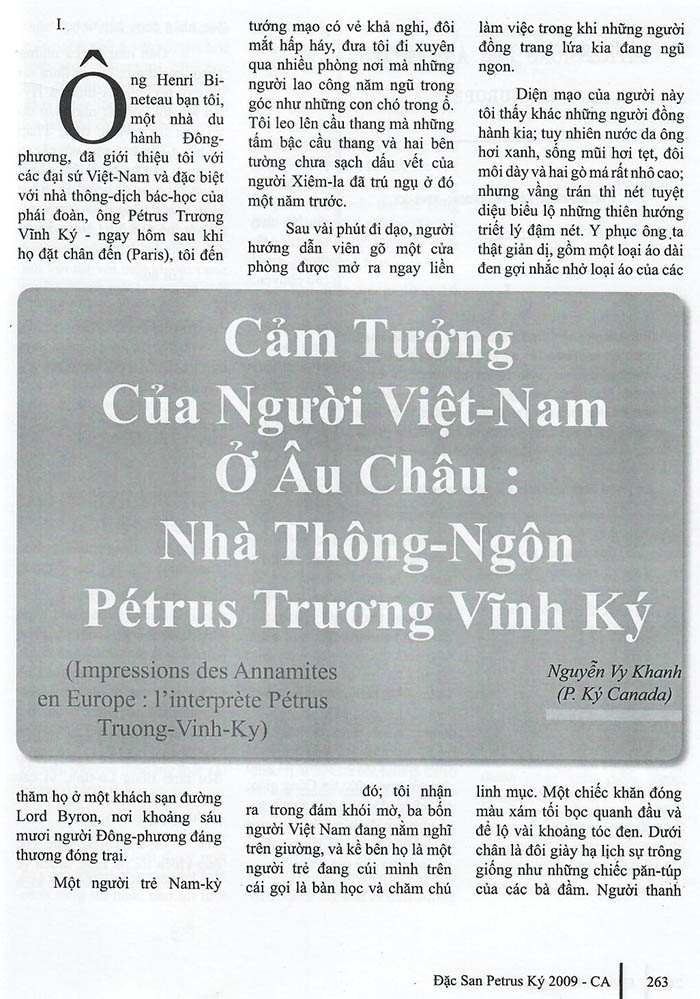 (Nguyên tác: Impressions des Annamites en Europe: L’ interprète Petrus Truong Vinh Ky của Richard Cortembert – Nguyễn Vy Khanh dịch)
