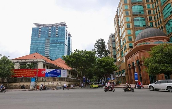 Tòa nhà 136 Hàm Nghi, quận 1 ngay trước chợ Bến Thành, nơi người dân bao đời quen gọi là Sở Hỏa xa. Ảnh: Quỳnh Trân