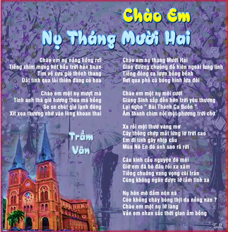 Chào Em Nụ Tháng Mười Hai Trầm Vân Share this: Click to share on X (Opens in new window) X Click to share on Facebook (Opens in new window) Facebook Like Loading...