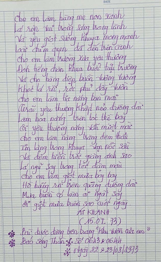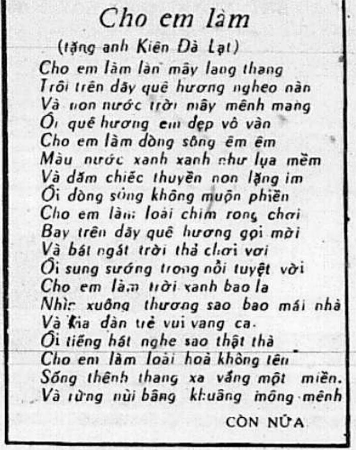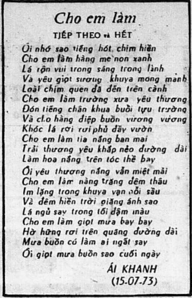 Bài được đăng trên trang “Khu vườn của em” * Báo Sóng Thần * Số 0643&0644 * Ngày 22&23/8/1973