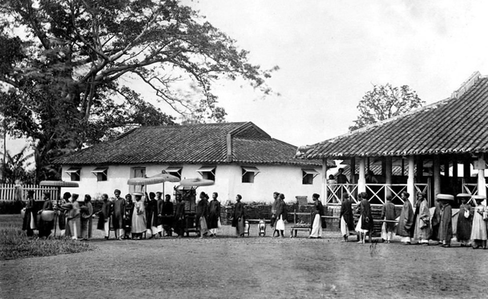 Hình ảnh trung tâm là ngôi nhà tranh lớn nhưng xung quanh đầy vẻ hiu quạnh. Người chụp là Paul Emile Berranger – nhà nhiếp ảnh tháp tùng Hải quân Pháp. Có lẽ, đây là bức ảnh của thuở đầu Sài Gòn lên ảnh.