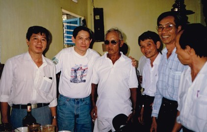 Từ trái qua: Cháu Mi, Chú Mười (nghĩa đệ của nhạc phụ), Minh, bạn Tam Nhiều, và tác giả