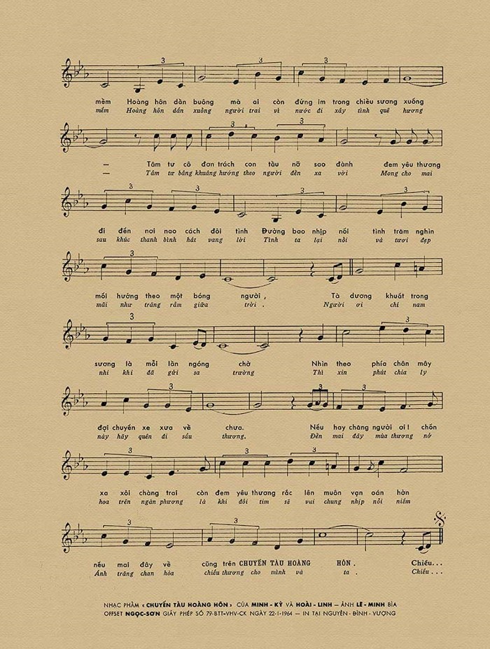 Nhắc đến nhạc phẩm “Chuyến tàu hoàng hôn”, ca sĩ Hoàng Oanh đã thuật lại như sau: “Mùa hè năm 1962, nhạc phẩm Chuyến tàu hoàng hôn” ra đời trong một ngày mưa đầu mùa ly biệt. Sau khi hoàn tất phần nhạc, nhạc sĩ Minh Kỳ đã nhờ nhạc sĩ Hoài Linh đặt lời ca. Bản nhạc được viết tại Thị-Nghè giữa năm 1962 và được tác giả ấn hành. Sau đó, nhà xuất bản Tinh Hoa Miền Nam của nhạc sĩ Lê Mộng Bảo cũng tái bản nhiều lần trong những năm của thập niên 60”.