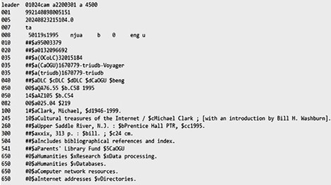 Dưới đây là ảnh của ký lục thư tịch cho cùng tài liệu, Cultural treasures of the Internet, đã giới thiệu bên trên trong tấm ảnh của một thẻ thư mục tiêu biểu: