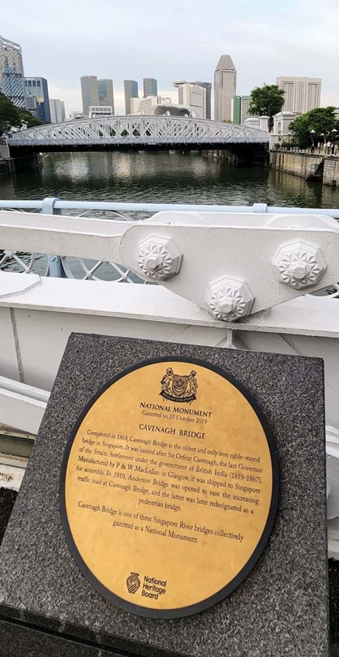 Bảng lưu niệm cây cầu cổ thế kỷ XIX ở Singapore