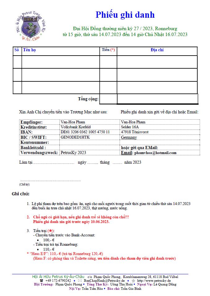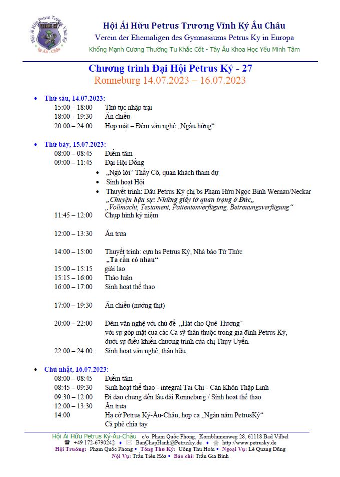 Thông báo Đại Hội Petrus Ký Âu-Châu kỳ thứ 27 / 2023
