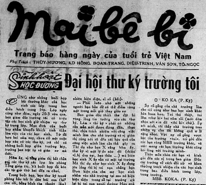 *Bài “Đại Hội Thư Ký Trường Tôi” được đăng trên trang Mai Bê Bi, báo Chánh Luận ngày 6-4-1974, và xin cám ơn chị Ái Khanh (Trần thị Bích Thuỷ) đã đánh máy lại để phổ biến.