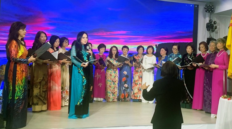 Phần trình diễn của cựu học sinh Trung Học Trưng Vương. (Hình: Lâm Hoài Thạch/Người Việt)