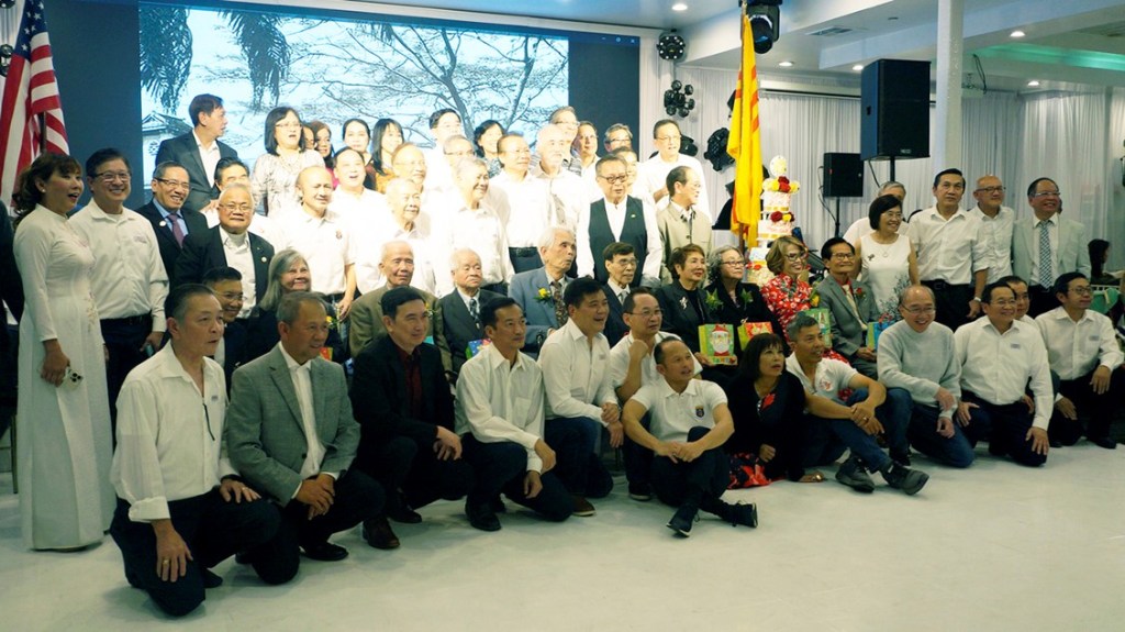 Một số thầy cô và cựu học sinh Petrus Ký họp mặt 2024 tại Little Saigon. (Hình: Lâm Hoài Thạch/Người Việt)