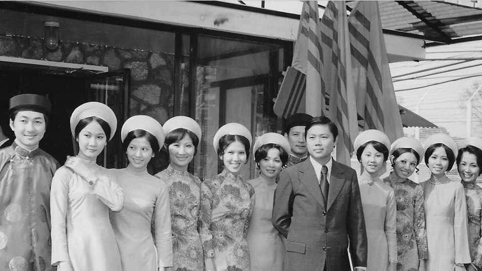 (*) Cô Mai Liên đứng ở bìa phải, chú Trần Nam đội khăn đóng, đứng thứ sáu trong hình đính kèm, đếm từ bên phải qua.
