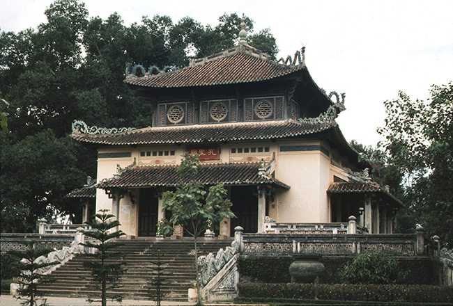 Tôi xin được đóng dấu ngoặc lại ở đây. Xin mời độc giả trở lại Viện Bảo Tàng. Viện Bảo Tàng là một toà nhà lớn, dài, sơn trắng, xây trên một nền cao. Bên trong chia làm nhiều phòng, mỗi phòng dành riêng cho một giai đoạn lịch sử hay một nền văn minh, chủ yếu là các cổ vật của nước ta và các quốc gia trong vùng như Chiêm Thành, Phù Nam, Chân Lạp. Ðáng chú ý nhứt có lẻ là phòng trưng bày các cổ vật của nền văn minh Óc Eo, đào được tại Long Xuyên trong thập niên 40, đặc biệt là hai đồng tiền cổ La Mã thời Hoàng Ðế Marc Aurèle, chứng tỏ Vương Quốc Phù Nam xưa đã có những trao đổi hoặc trực tiếp hoặc gián tiếp (qua các thương nhân Ả Rập ?) với Ðế Quốc La Mã.