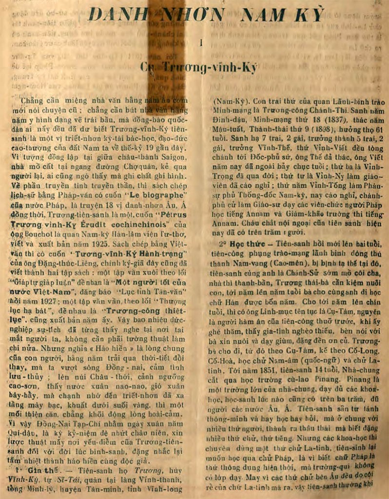 Danh Nhơn Nam Kỳ – Cụ Trương Vĩnh Ký Huyền Mặc Đạo Nhân (Nguồn: báo Đồng Nai số 23-24, Jan-Fevr-1933) Share this: Share on X (Opens in new window) X Share on Facebook (Opens in new window) Facebook Like Loading...