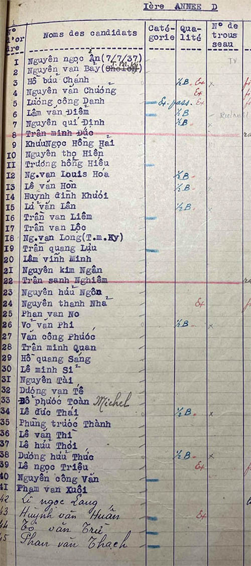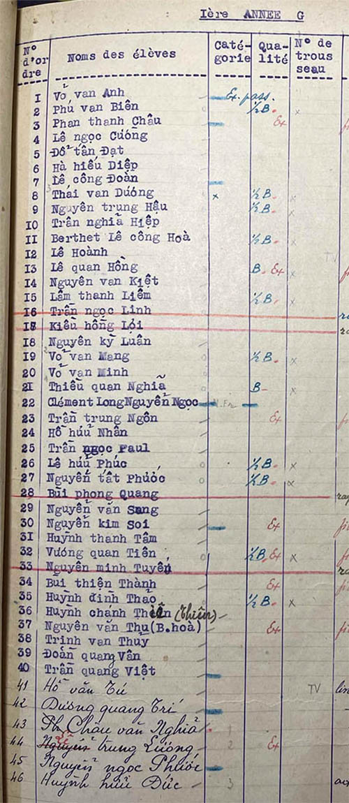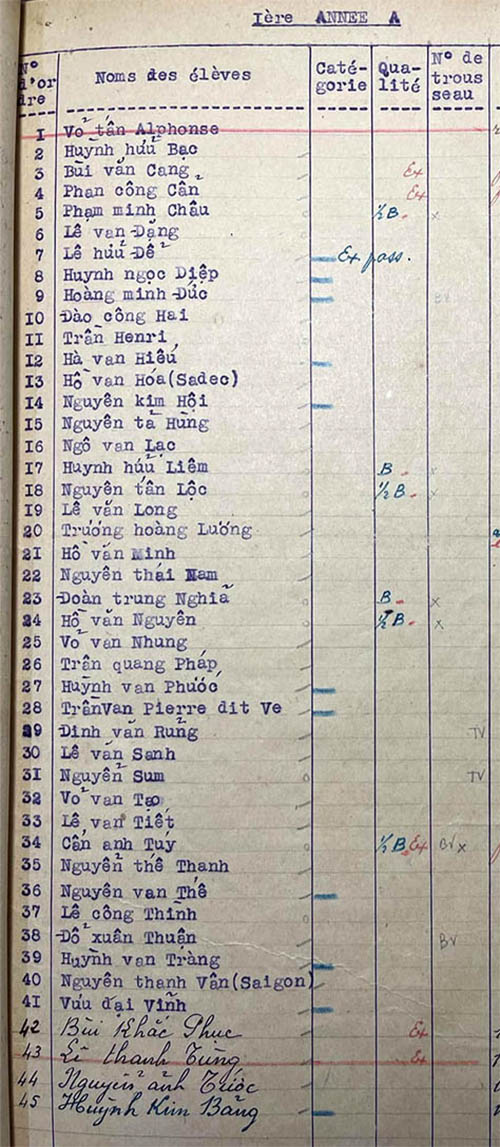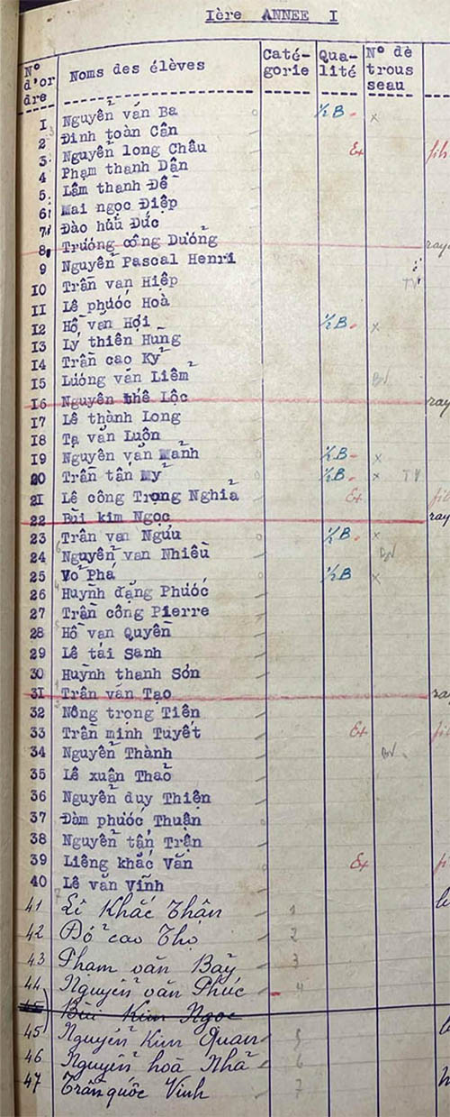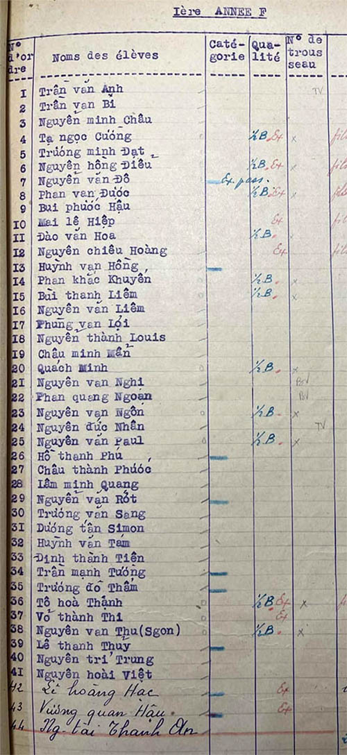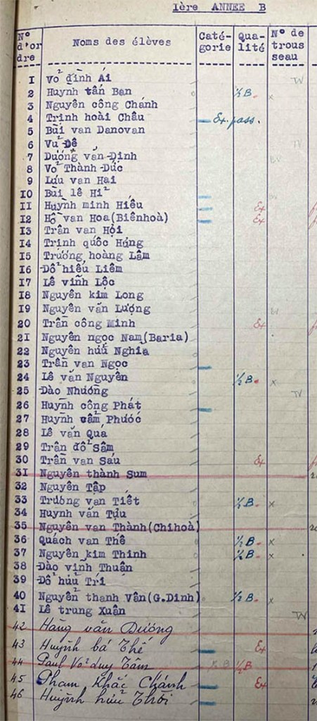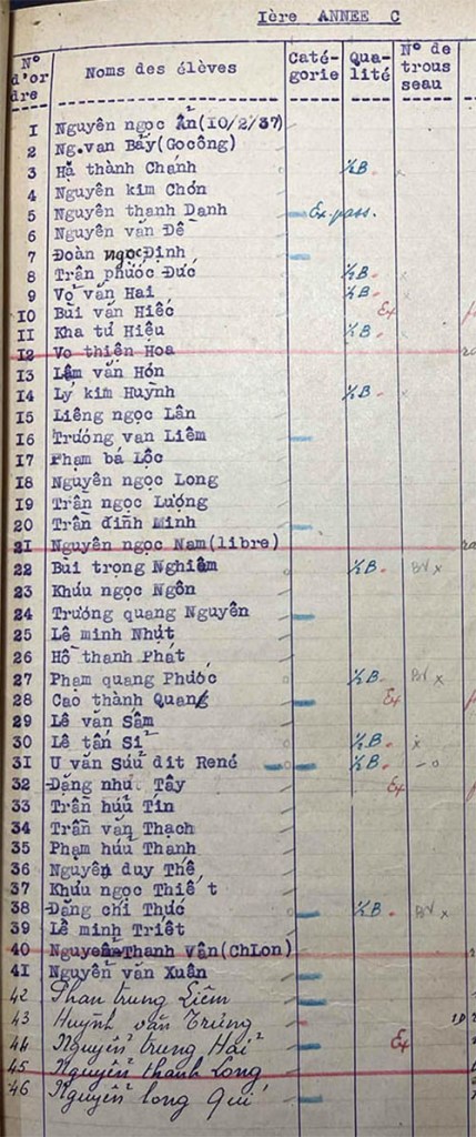 Danh sách học sinh các lớp trong năm học 1950-51 tại trường trung học Petrus Trương vĩnh Ký