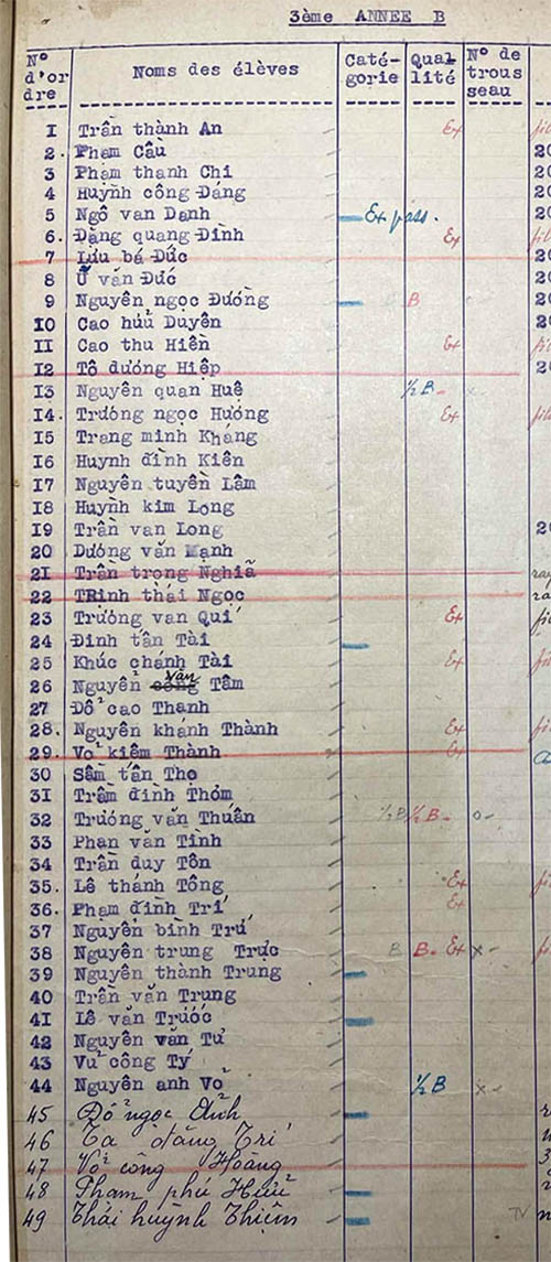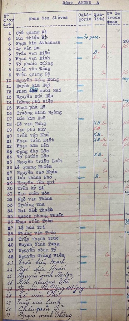 Danh sách học sinh các lớp trong năm học 1950-51 tại trường trung học Petrus Trương vĩnh Ký Lớp 3ème Année Lớp 3ème Année A Lớp 3ème Année B Lớp 3ème Année C Lớp 3ème Année D Lớp 3ème Année E Lớp 3ème Année F Share this: Click to share on X (Opens in new window) X Click to share on Facebook (Opens in new window) Facebook Like Loading...