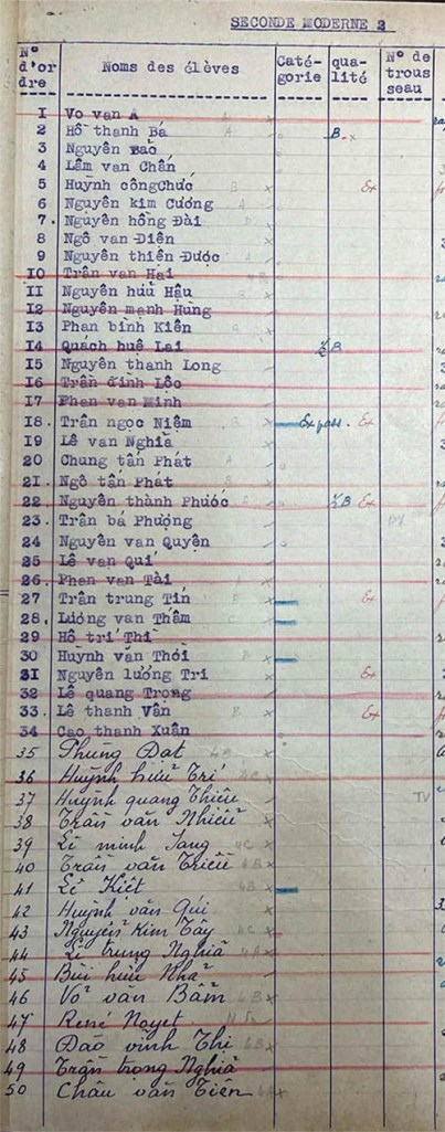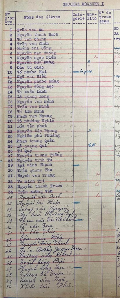 Danh sách học sinh các lớp trong năm học 1950-51 tại trường trung học Petrus Trương vĩnh Ký Lớp Seconde Moderne Lớp Seconde Moderne 1 Lớp Seconde Moderne 1 (Suite) Lớp Seconde Moderne 2 Lớp Seconde Moderne 2 (Suite) Lớp Seconde Moderne 3 (Filles) Share this: Click to share on X (Opens in new window) X Click to share on Facebook (Opens in new window) Facebook Like Loading...