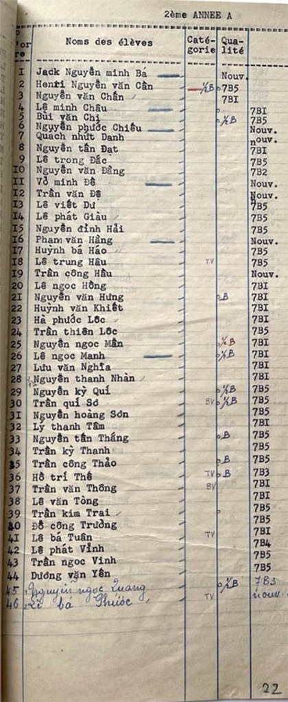 Danh sách học sinh các lớp trong năm học 1952-53 tại trường trung học Petrus Trương Vĩnh Ký Lớp 2ème Année Lớp 2ème Année A Lớp 2ème Année B Lớp 2ème Année C Lớp 2ème Année D Share this: Share on X (Opens in new window) X Share on Facebook (Opens in new window) Facebook Like Loading...
