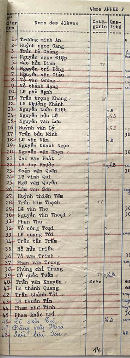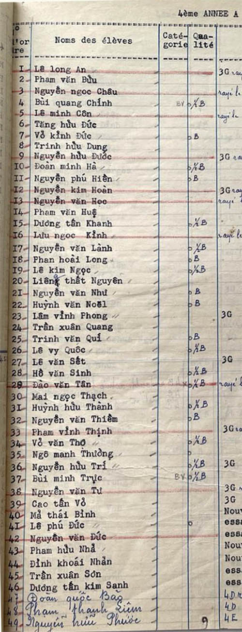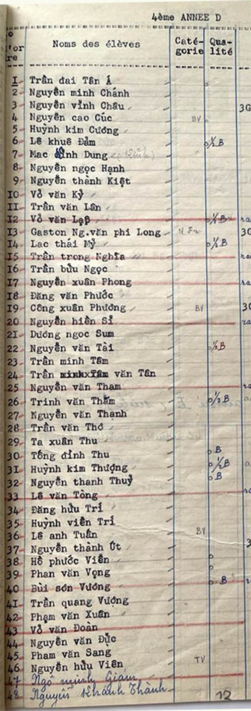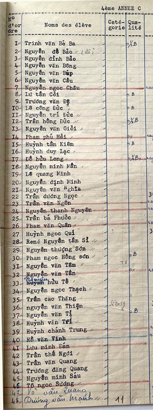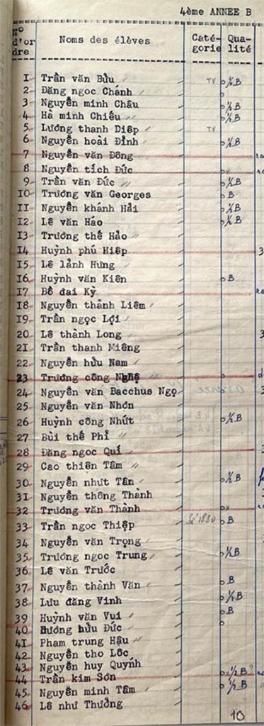 Danh sách học sinh các lớp trong năm học 1952-53 tại trường trung học Petrus Trương Vĩnh Ký