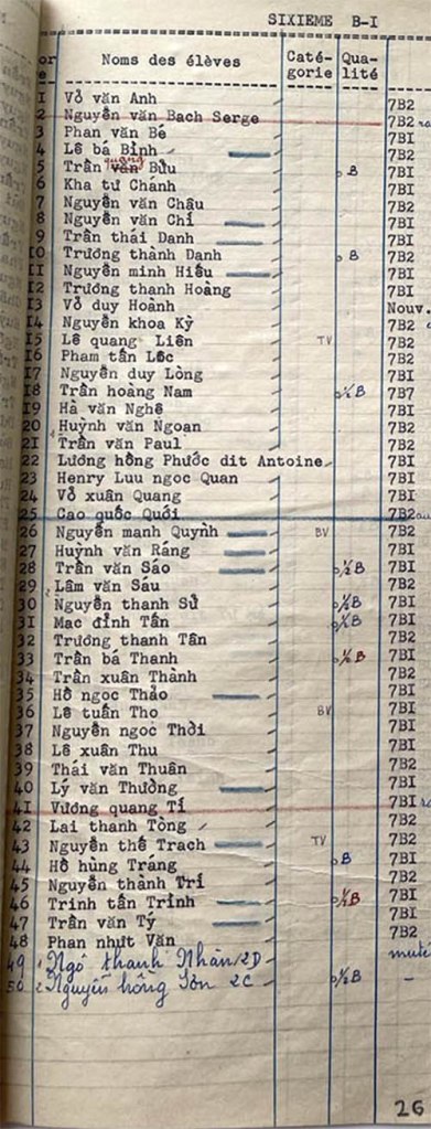 Danh sách học sinh các lớp trong năm học 1952-53 tại trường trung học Petrus Trương Vĩnh Ký Lớp Sixieme Lớp Sixieme B-1 Lớp Sixieme B-2 Lớp Sixieme B-3 Lớp Sixieme B-4 Share this: Click to share on X (Opens in new window) X Click to share on Facebook (Opens in new window) Facebook Like Loading...