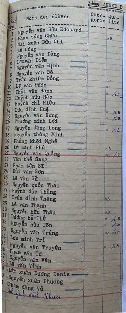 Danh sách học sinh các lớp trong năm học 1953-54 tại trường trung học Petrus Trương Vĩnh Ký Lớp 3ème Année Lớp 3ème Année A Lớp 3ème Année B Lớp 3ème Année C Lớp 3ème Année D Share this: Share on X (Opens in new window) X Share on Facebook (Opens in new window) Facebook Like Loading...